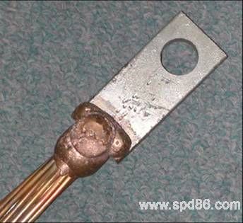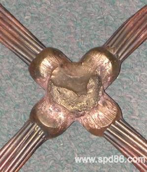 这两幅图是放热焊接与传统连接的连接点实际情况