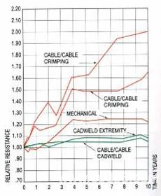当今接地系统接地体连接方式有压力焊、钎接、放热焊接等.要保证接地系统的可靠性。接地系统的连接点的寿命必须大于或等于接地导体的寿命.连接点必须能承受多次故障电流在防腐蚀的情况下能保持低电阻.而放热焊接焊接的连接点是符合以上条件的,而且还节省接地材料。